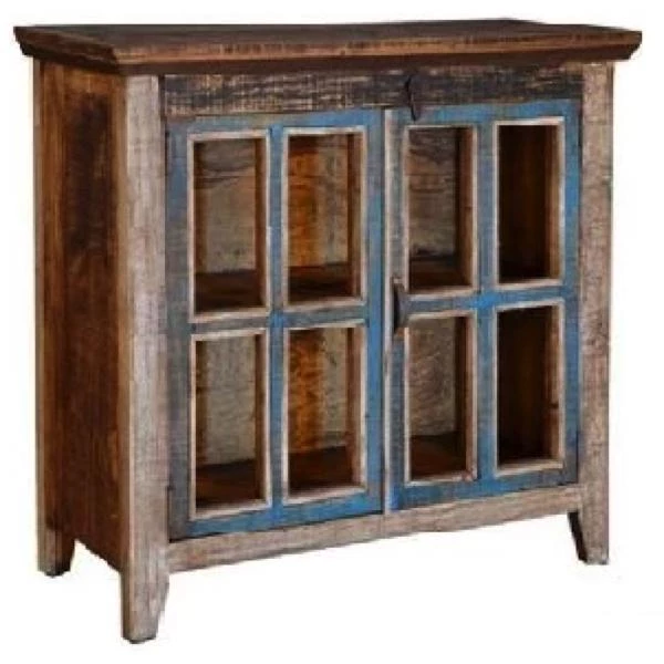 The Cabana 2 Door Curio is the perfect accent piece for small spaces. It comes with two glass doors and features a bright multicolor distressed finish.