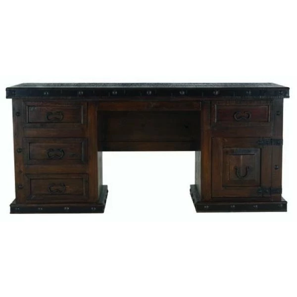 This is a smaller option to our executive desk. It features beautiful metal work and elegant finishes. Pair it with our Grand Hacienda bookcases and filing cabinet to complete your office.
