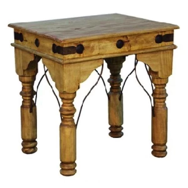 The Indian End Table features nail heads and iron work. It can be paired with our Indian Coffee and Sofa Table to give you a complete coffee table set.