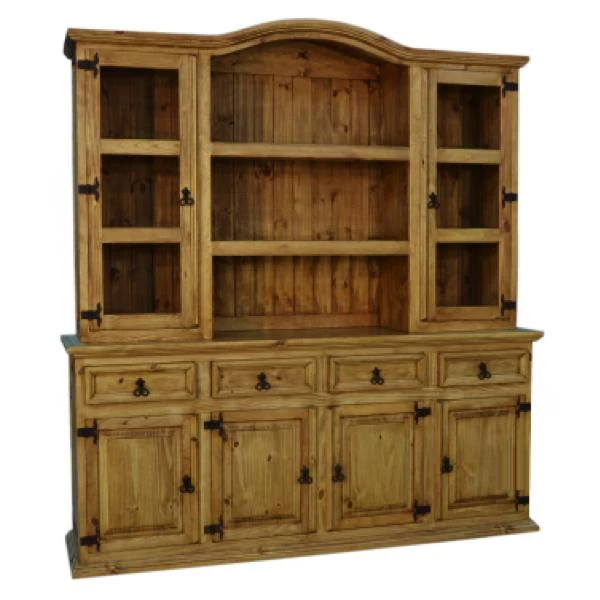 The 4 Door Hutch comes in our medium stain. It features 4 doors in the buffet and glass door top creating a beautiful traditional rustic style.