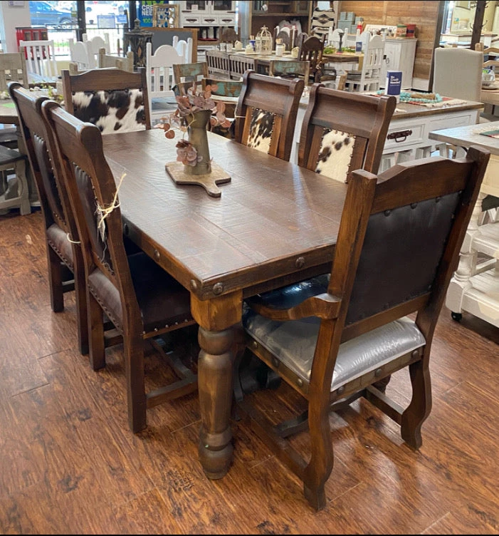 Rustic Furniture Depot Cowhide 6′ Dining Set Dining Room Sets