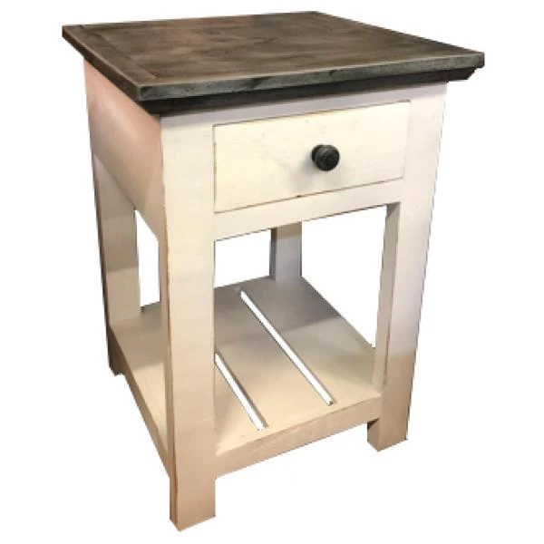 The Slate Canyon End Table comes in a soft white and grey finish. It features a drawer for extra storage. Pair it with our Slate or Granite Sofa Set to complete your living room.