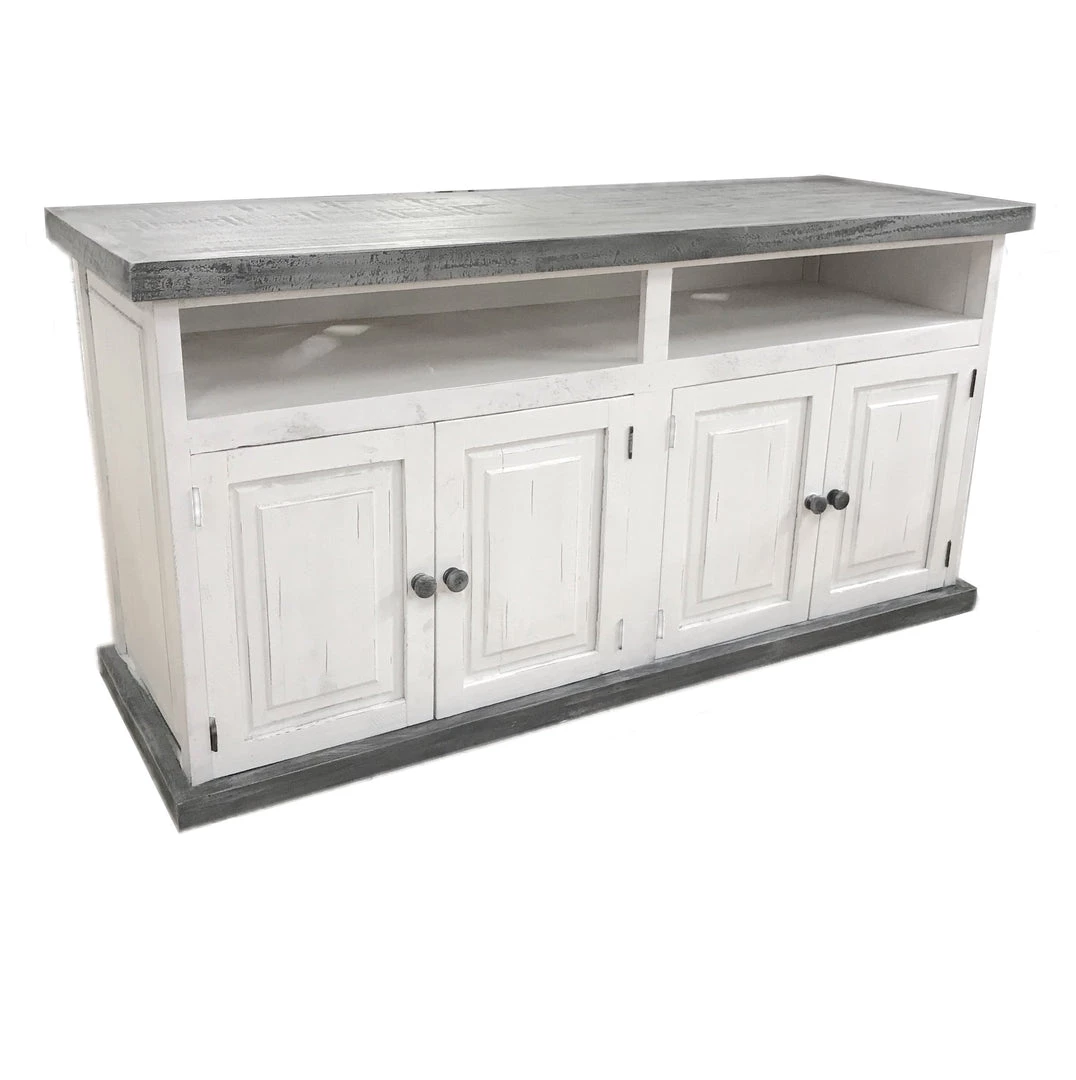 This TV stand features four wood doors and is 60″ wide. It is featured in one of our most popular finishes