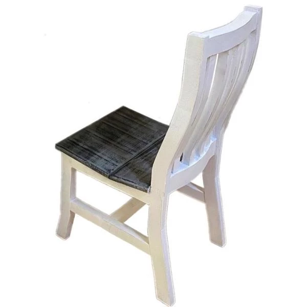 The Slate Chair features a beautiful grey and white finish and slatted back.
