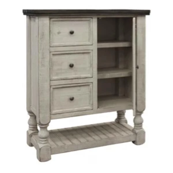 The Stone Chest comes in a beautiful two tone finish and has both shelving and drawers for storage.
