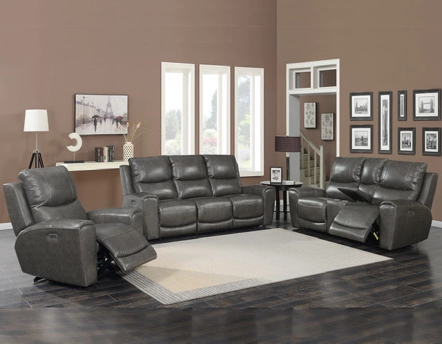 RusticHome-Furniture Leather Laurel Gray Power Reclining Set