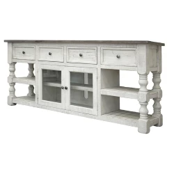 Stone 80″ TV Stand w/4 Drawers & 2 Glass Doors.